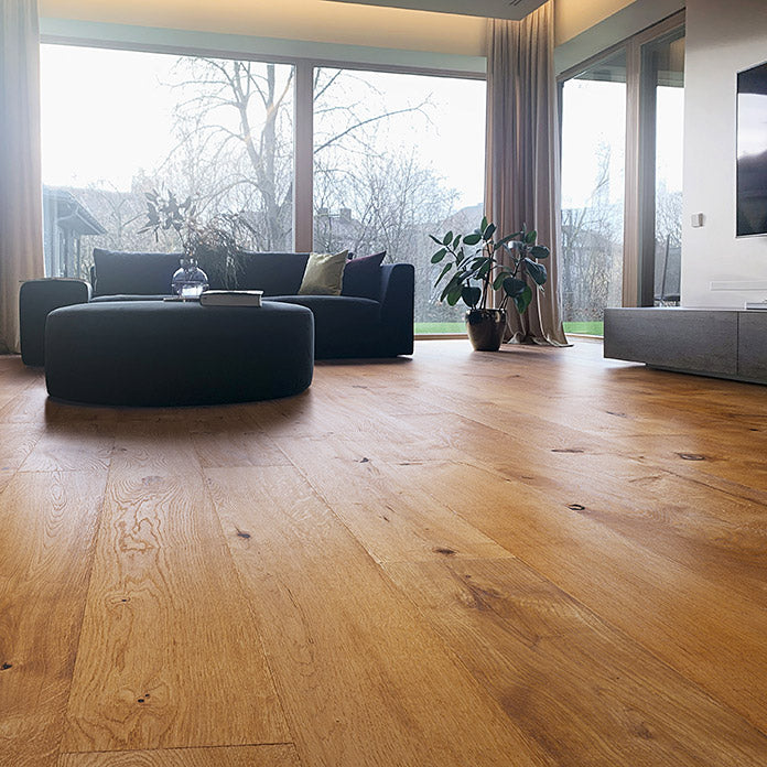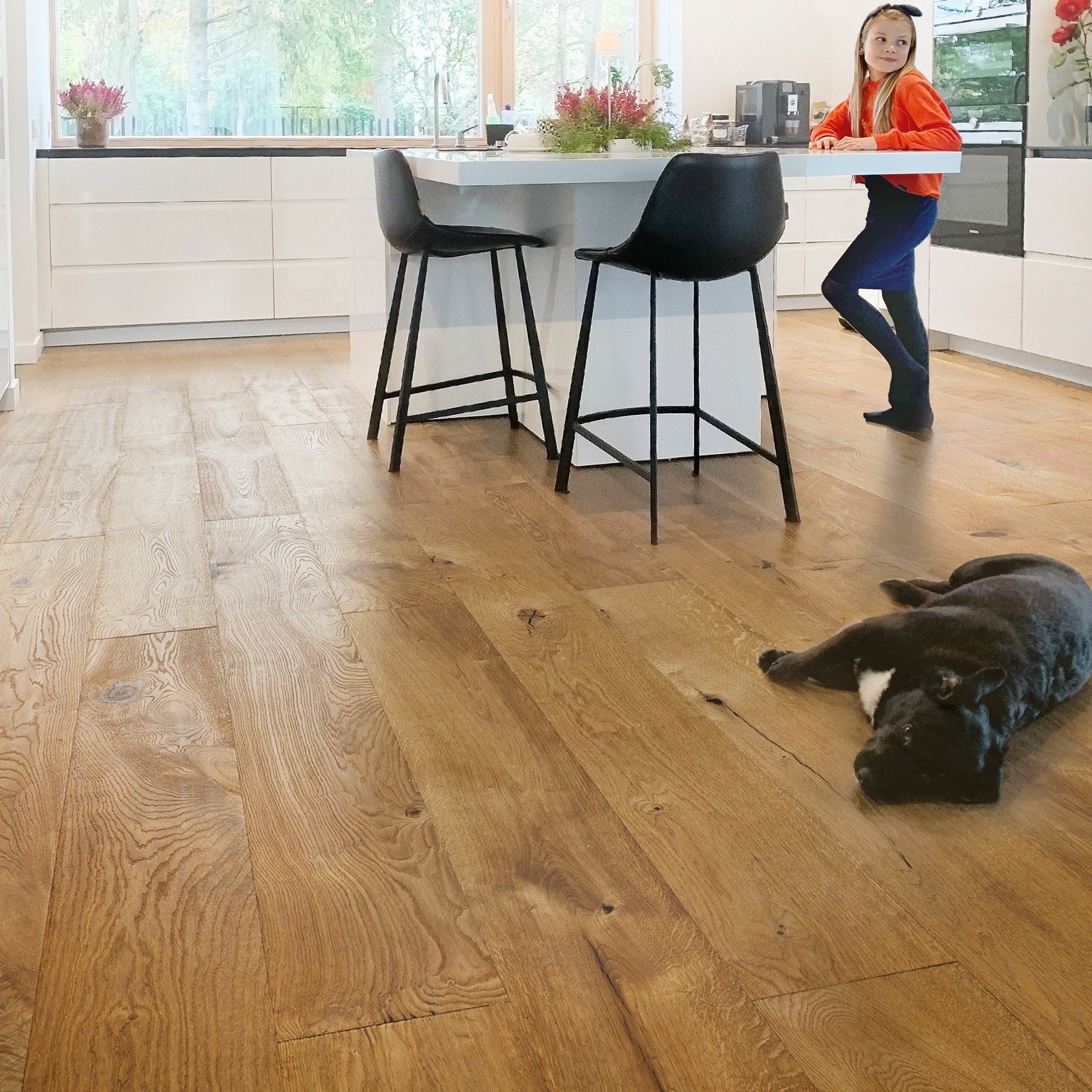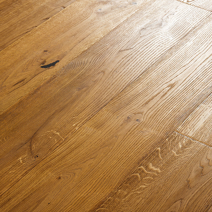 Размеры: 1900 x 190 x 14 мм. Копченый дуб. Обработка щеткой, тиснение. Обработано маслом.