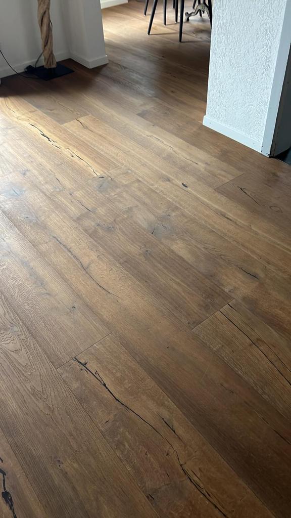 Крупноформатный трехслойный паркет из дуба Lorenz в деревенском стиле